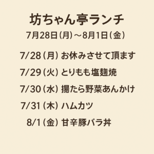 🍱 今週のランチメニュー(8/4〜8/8)